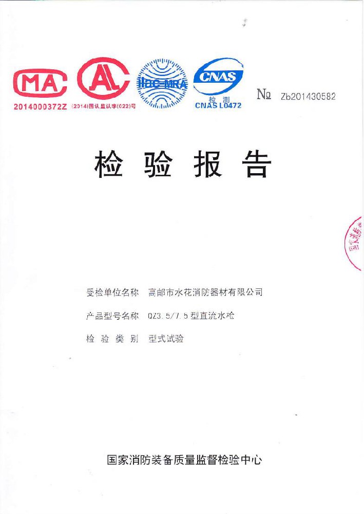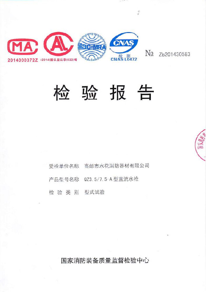 我廠創(chuàng)辦于一九七六年六月,現有職工600人,其中各類技術和管理人員68人。擁有固定資產5000萬元,占地面積35000多平方米,建筑面積25000多平方米。建立了完善的質量體系,取得多種“計量合格確認證書”,并成為江蘇及多省的消防協會會員單位。工廠技術力量雄厚,生產和檢測設備齊全,工藝先進。生產“水花”牌水帶接口: KDK65, KD65,KY65,KN65。消防水槍: QZG3.5/7.5, QZ3.5/7.5,QP8/0.7Z泡沫水槍。室內消火栓: SN65, SNW65-I,SNZ65, SNZW65-I。 消防軟管卷盤JPS0.8-19/25。生產的“郵花”牌,消防有襯里水帶:65-8、10、 13、 16、20、 25型; 80-16、 20、25型。水帶接口: KD50、65; KY50、65;KN65。消防水槍: Q2Z3.5/7.5、 5。 室內消火栓: SN65, SNW65-I, SNZ65, SNZW65-I。 并于二零一五年五月通過公安部消防產品合格評定中心3C換版檢驗,獲得以上產品所有的強制認證證書,準予生產和銷售,產品行銷全國各地,深受廣大用戶好評。